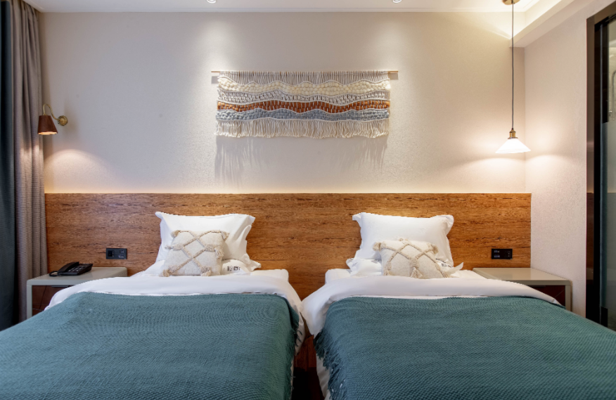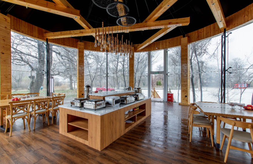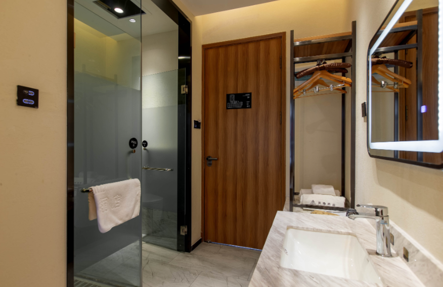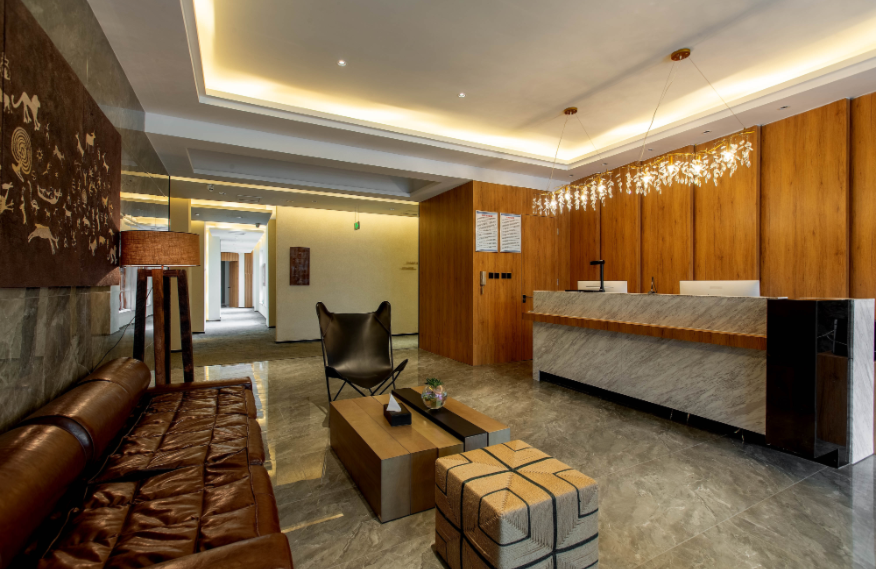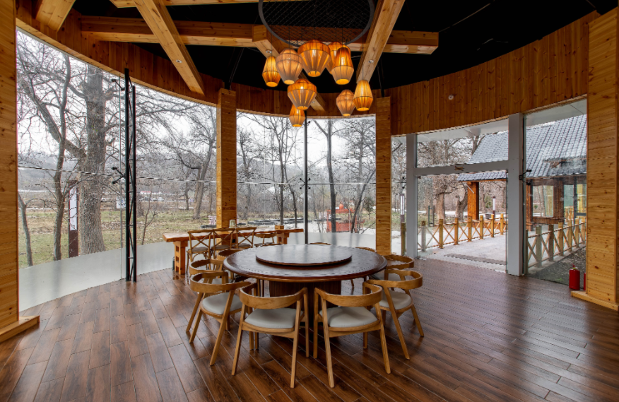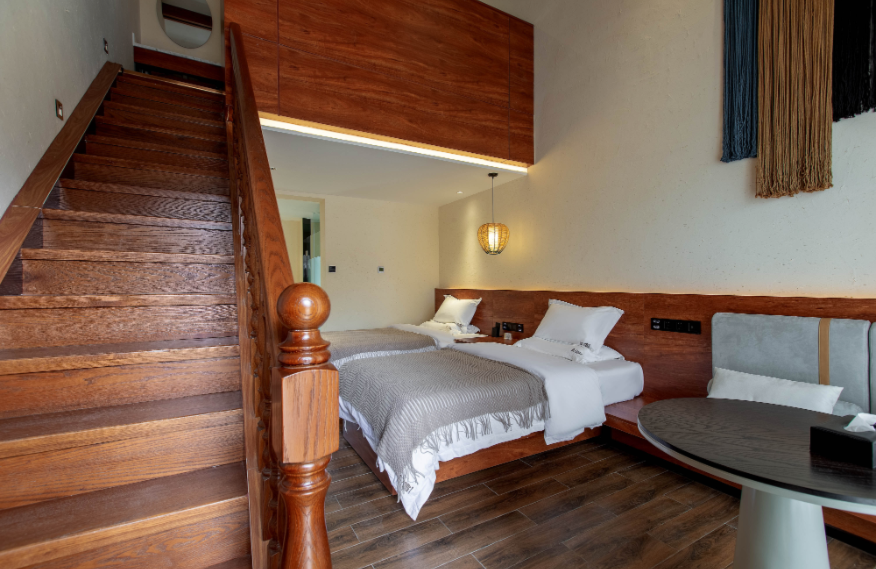 占地面積80畝,坐落于森林里,采用木屋、石頭、玻璃等主材建造,立志打造“在自然里長出的建筑”,室內室外一步一景。 酒店一期客房數(shù)量55間,其中普通標準間32間,大床房10間,家庭房2間,庭院房11間,餐廳面積300㎡,客房具有面積大,空間視野好的特點,按照準五星級生態(tài)園林酒店的標準配備高檔、精致家具及潔具,裝飾裝潢強調統(tǒng)一中顯個性,力求舒適、溫馨、實用。